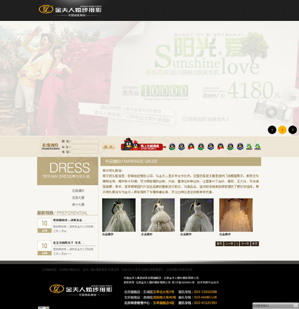 婚紗攝影網(wǎng)站建設(shè)公司,做網(wǎng)站優(yōu)化關(guān)鍵詞排名SEO,營銷型,手機(jī)網(wǎng)站建設(shè),響應(yīng)式,品牌型,電商/門戶,婚紗攝影外貿(mào)型網(wǎng)站建設(shè). 金夫人婚紗影樓不絕堅持走佳構(gòu)化蹊徑,積極生長品牌文化,始終貫徹我們的十大上風(fēng):榮獲中國貿(mào)易光榮企業(yè)、中國照相名店、中國婚紗照相服務(wù)滿足十佳誠信單元、群英會婚紗行業(yè)良好結(jié)果獎、精力文明良好團(tuán)體、斲喪者信得過企業(yè)、群英會婚紗行業(yè)特殊孝敬獎等殊榮。不絕開闊婚紗照相新民風(fēng),引領(lǐng)風(fēng)騷,獨(dú)樹氣勢氣勢!