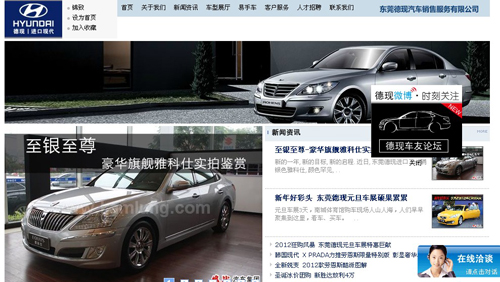 東莞德現(xiàn)汽車銷售服務(wù)有限公司成立于2006年12月,是經(jīng)工商局批準(zhǔn)的小轎車經(jīng)營單位,是專門從事現(xiàn)代品牌進(jìn)口高檔跑車、轎車、越野SUV整車銷售,汽車維修,配件供應(yīng)及售后服務(wù)為一體的汽車銷售服務(wù)中心。 東莞德現(xiàn)汽車銷售服務(wù)有限公司位于寮步國際汽車城內(nèi),上海大眾斯柯達(dá)旁。公司主銷車型有:超豪華行政座駕雅科仕、高級豪華轎車勞恩斯、城市越野SUV維拉克斯和熱賣的新勝達(dá)、城市酷炫轎跑勞恩斯-酷派、現(xiàn)代高端多用商務(wù)車H-1輝翼、全新《流體雕塑》設(shè)計風(fēng)格的全新雅尊 、大膽的三門設(shè)計,勁酷的混血新生代-飛思Veloster等。