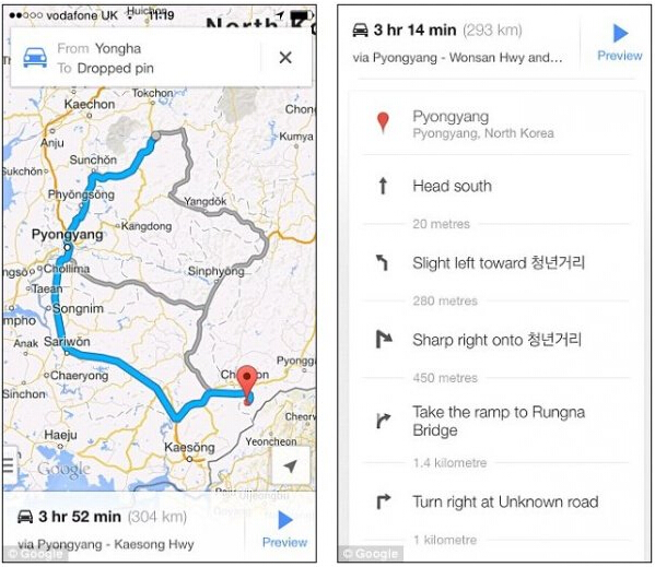 Google為朝鮮操碎心:朝鮮的谷歌地圖上終于有了路線規(guī)劃