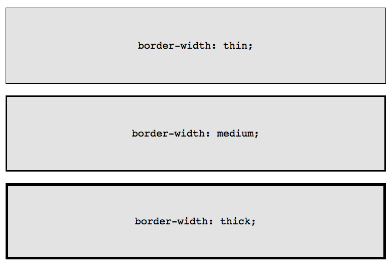 除了指定具體的邊框?qū)挾戎?,也可以使用這三個關(guān)鍵詞:thin,medium 和 thick。