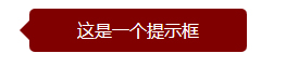 <!DOCTYPE html> <html> <head> <meta charset="UTF-8"> <link rel="shortcut icon" href="resources/img/logo-color.png" type="image/x-icon"> <title>測試</title> <style> .out-div { color: #FFFFFF; font-size: 16px; line-height: 40px; display: inline-block; height: 40px; width: 200px; text-align: center; border-radius: 5px; margin-left: 32px; vertical-align: top; background-color: maroon; } .arrow { width: 0px; height: 0px; border-top: 10px solid transparent; border-right: 10px solid; border-bottom: 10px solid transparent; position: absolute; margin-left: -10px; margin-top: 10px; border-right-color: maroon; } </style> </head> <body> <div class="out-div"> <div class="arrow" ></div> <span>這是一個提示框</span> </div> </body> </html>